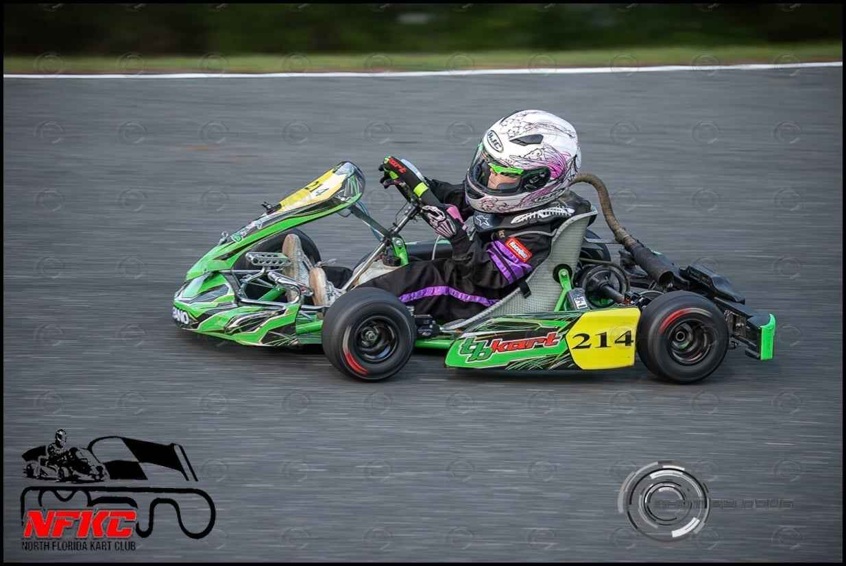 My personal opinion if she’s had enough practice to where safety stuff is good, and you’re not going to have any issues with the gas/brake then get her started at the local level. The important thing is not to put any pressure on her to go faster or achieve a certain finish or anything. Keep it fun, celebrate the little achievements and when she is ready to push it and put in the time to get faster nurture it. Don’t get discouraged or be hard on her (seen it) when she slips back though, because kids are so up and down at that age they can just be off one day (or session) to the next.