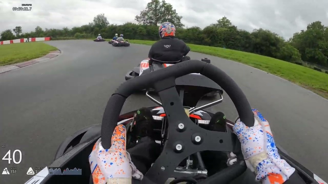 Throughout the night, I noticed some of my competitors seemed to be going too low on their starting tires pressures, especially as the sun went down. You can see that the 125cc kart ahead of me is all over the place in the opening laps. The pre-final was only 8 laps and the final was only 12. Since I have a much lighter kart with less power and a gentle right boot, I’m able to keep my tire pressures/temperatures in the working window all race despite starting 1-2 psi higher than my competitors on the same tire. My tires come up to temperature more quickly, and I’m fast in the opening laps, allowing me to build a gap to the 4th place kart. Later in the race, his tires heat up and he starts to track me down, but by then it’s too late.
