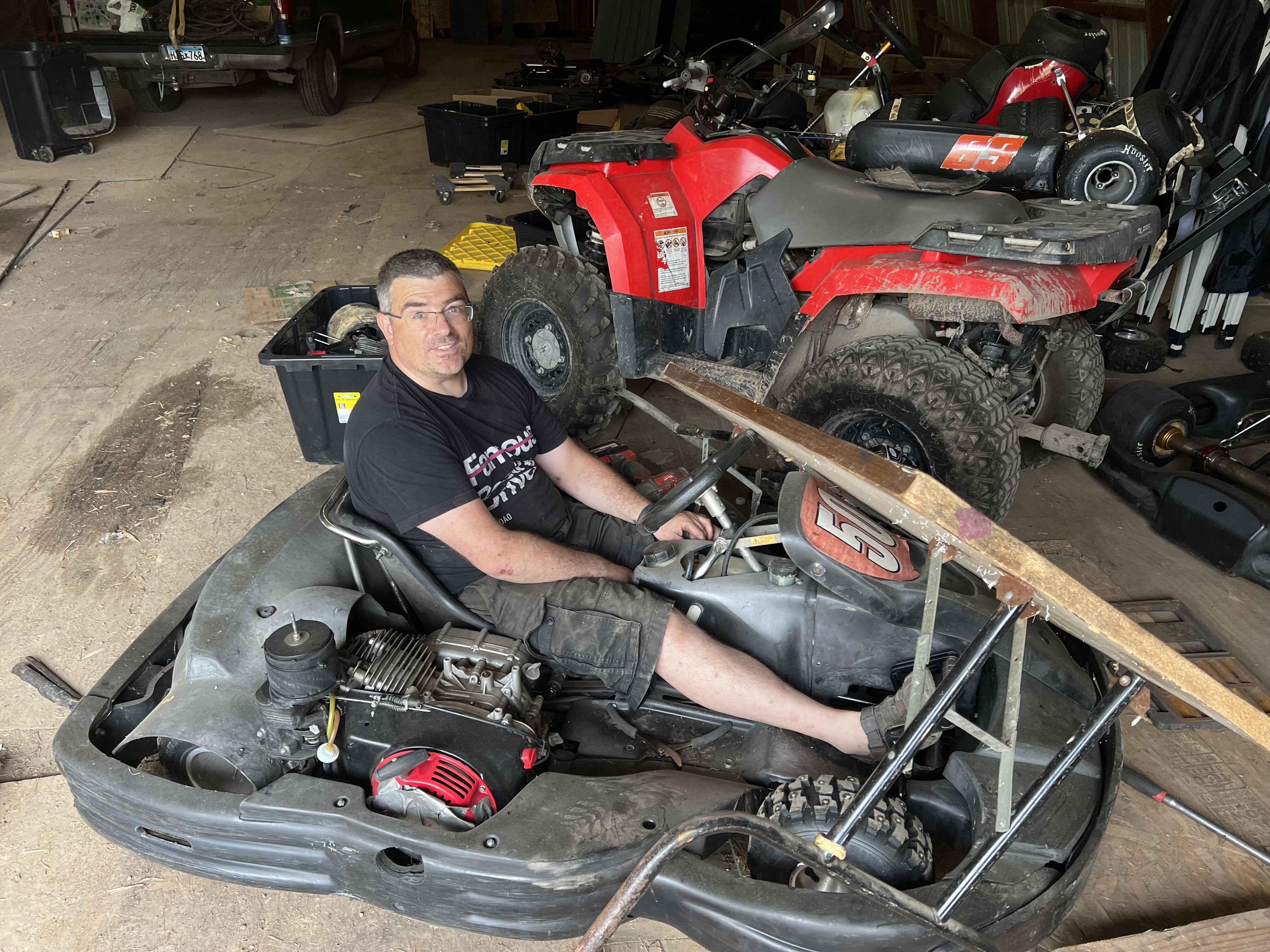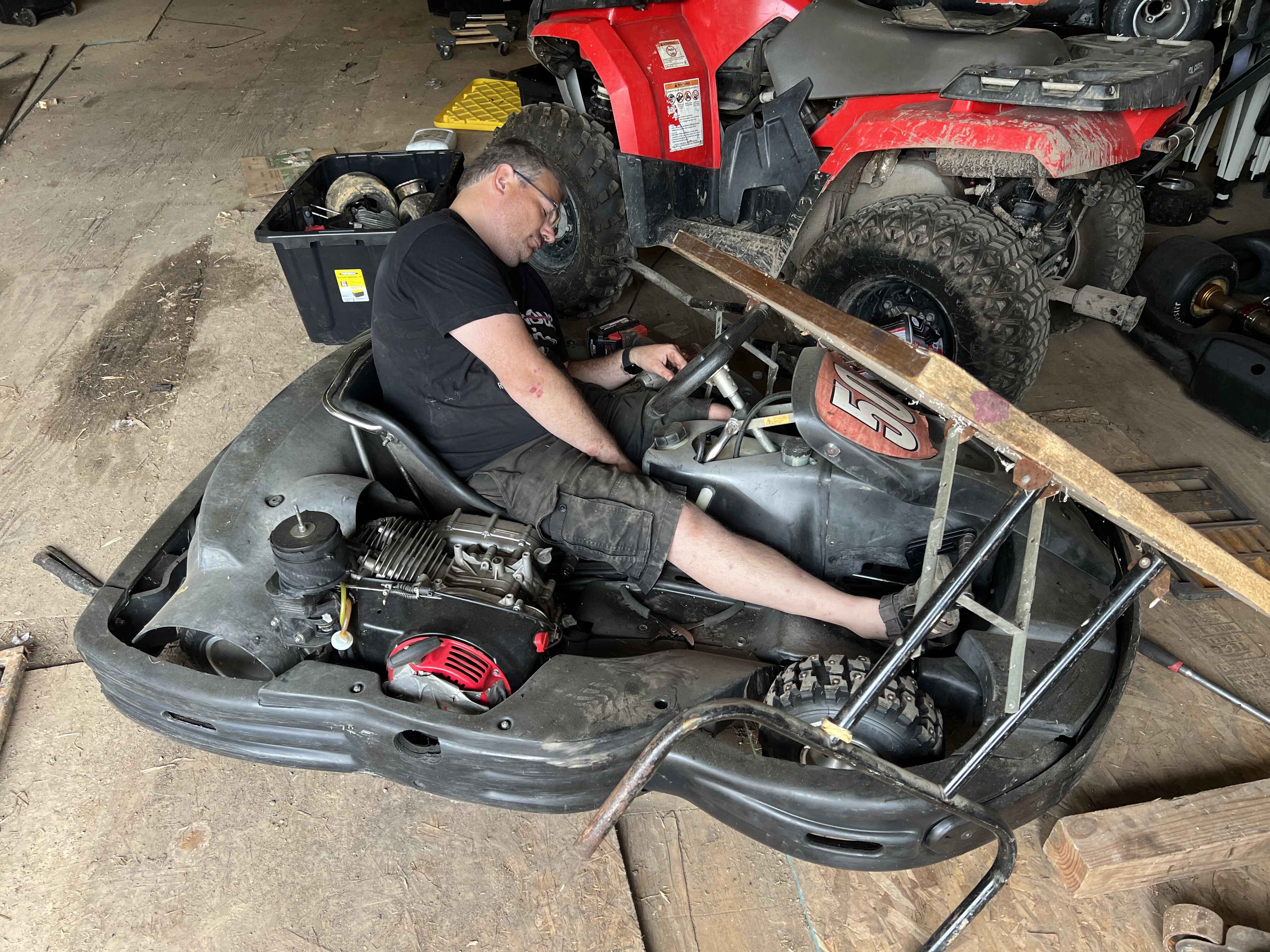 Slightly misjudging his reentry from time traveling back on his dyno to delete his ill-timed “Various Karts for Sale” post, James crashed into a folding table, rendering himself unconscious… but fortunately, not seriously injured.