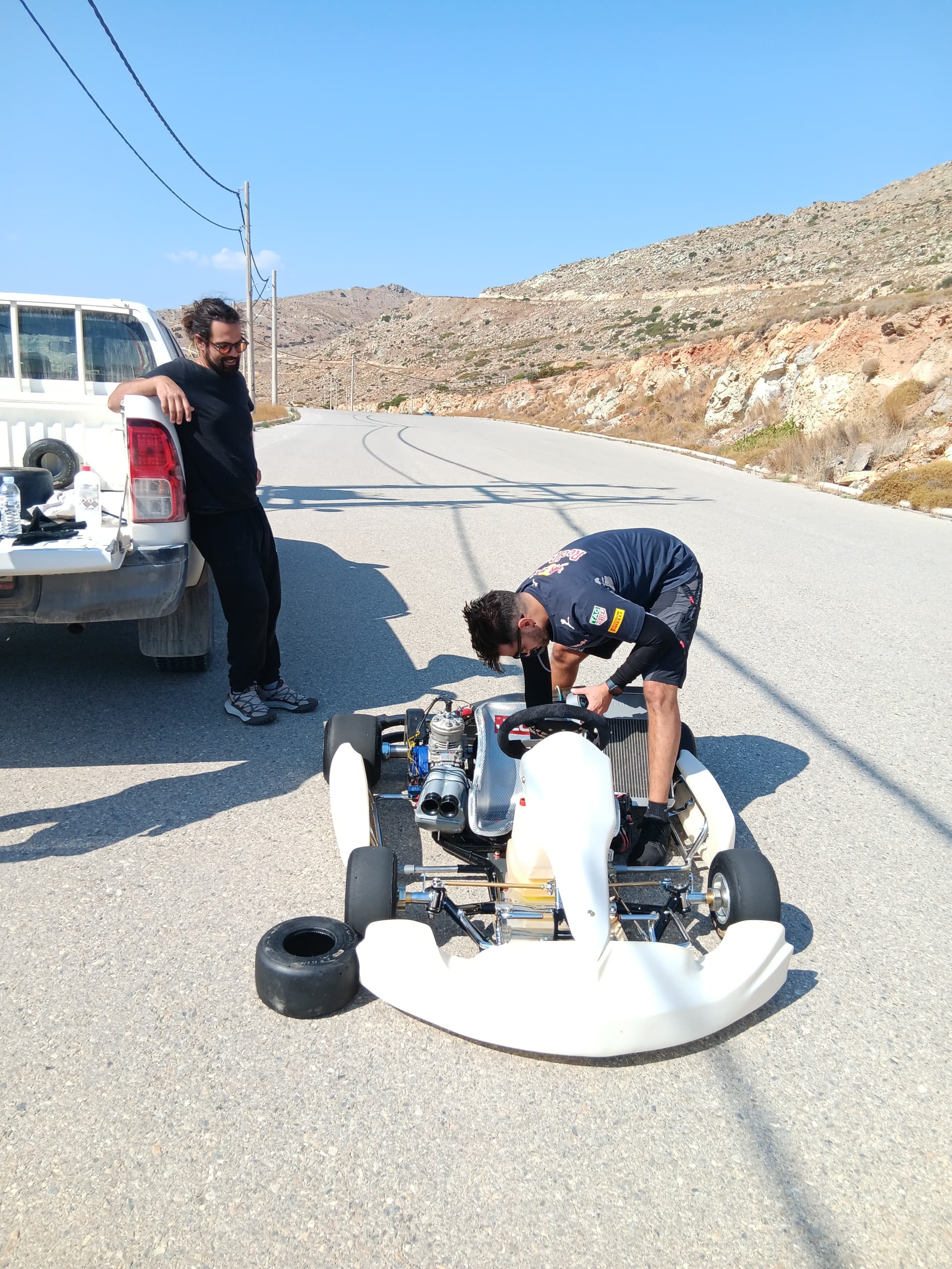 Well it’s front wheels balancing night today in karystos little town.